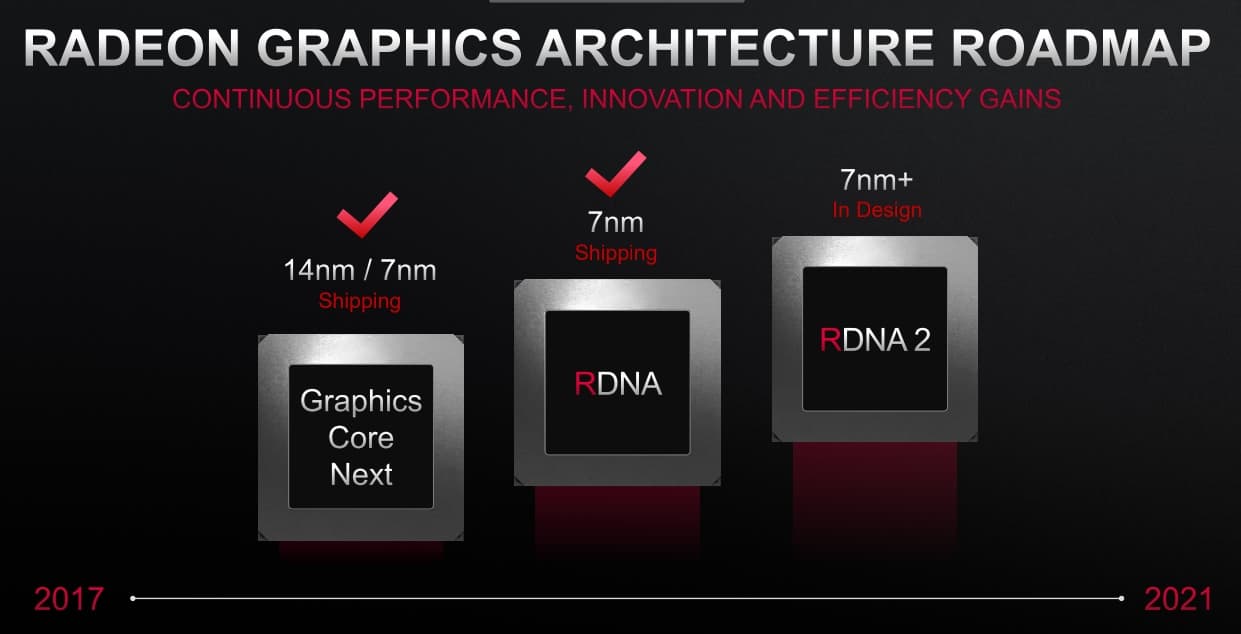 Как можно видеть, архитектура RDNA2 уже находится в разработке и должна появиться в виде серийных продуктов в следующем году. Такие GPU будут использовать улучшенный семинанометровый техпроцесс.