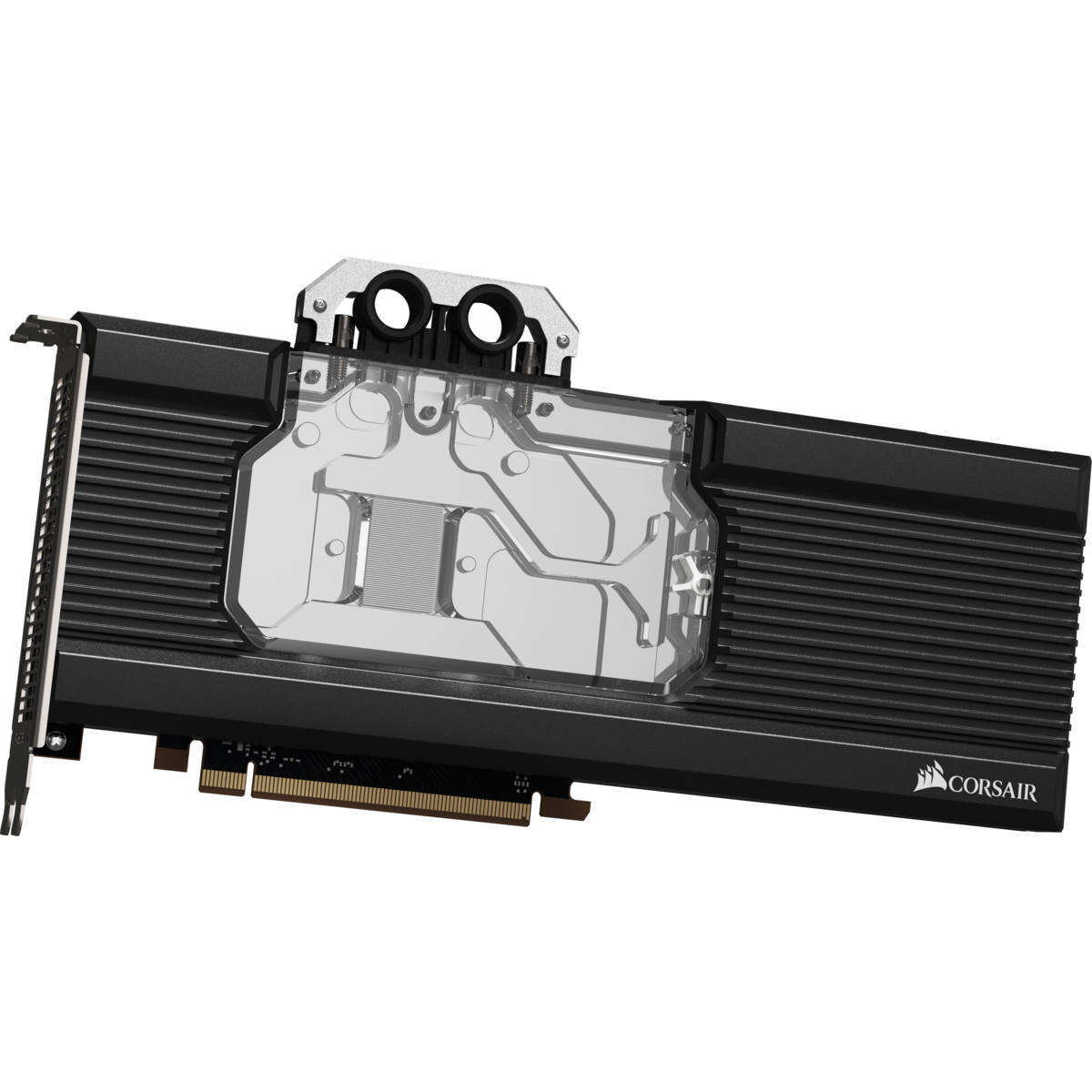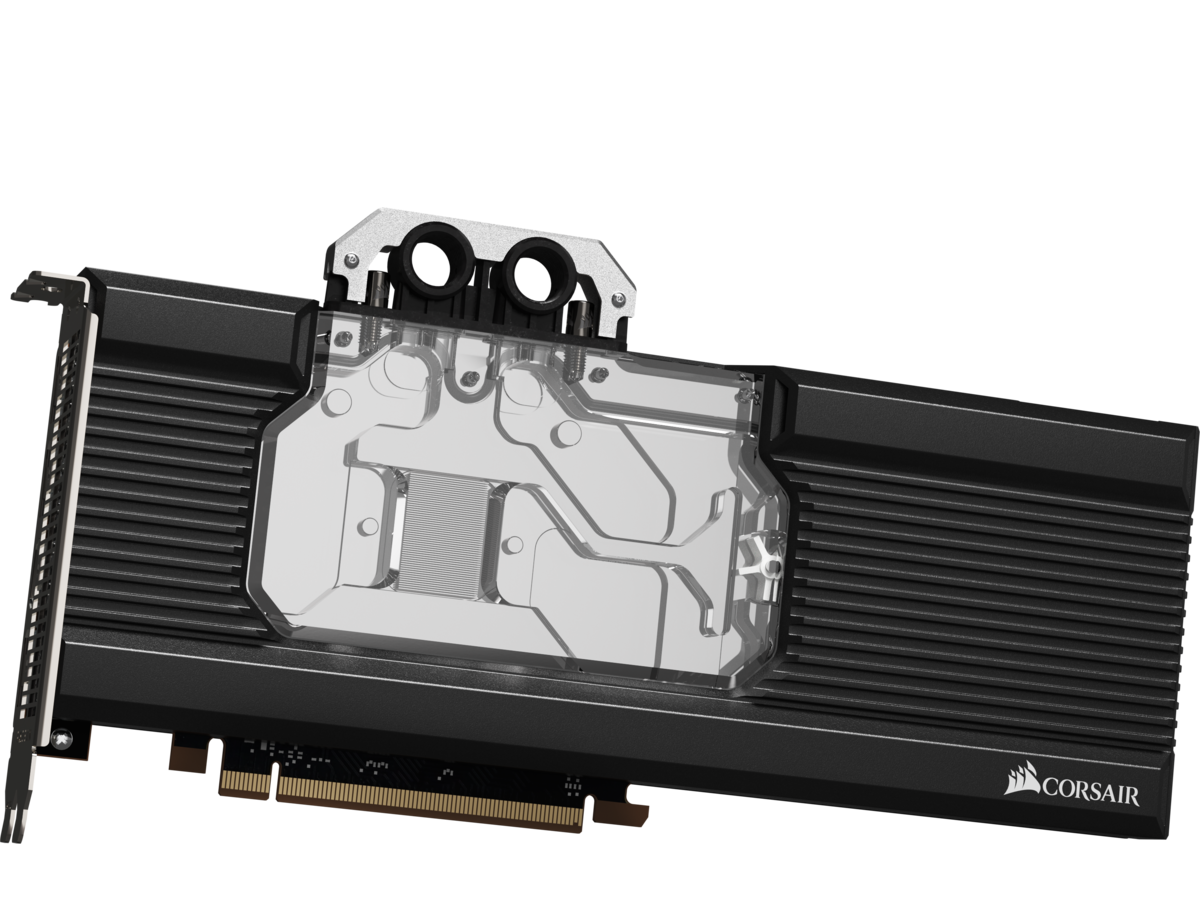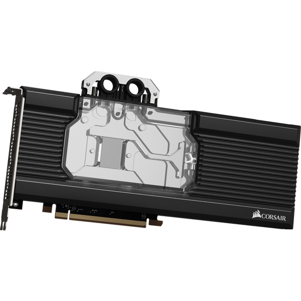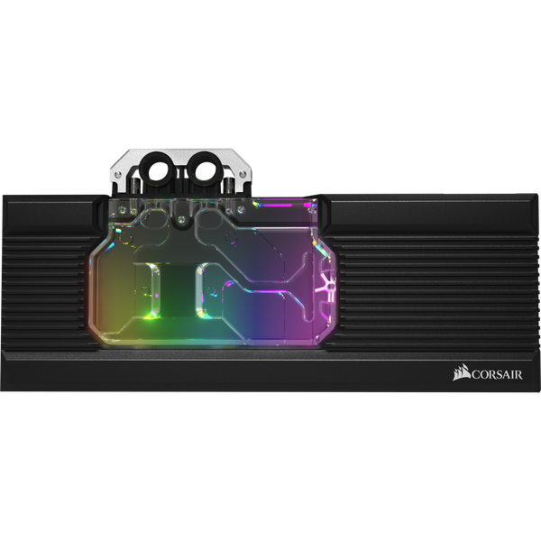 Водоблок с полным покрытием отводит тепло от GPU, памяти и регуляторов напряжения. Он украшен подсветкой RGB, которой можно управлять с помощью контроллеров Commander PRO и Lighting Node PRO, совместимых с фирменной системой iCUE.