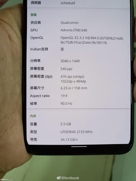Также фотография подтверждает, что смартфон получил 6 ГБ оперативной памяти LPDDR4X, а также экран диагональю 6,23 дюйма разрешением 3040 х 1440 пикселей. Его отличительной особенностью станет частота обновления картинки, которая составит 90 Гц.