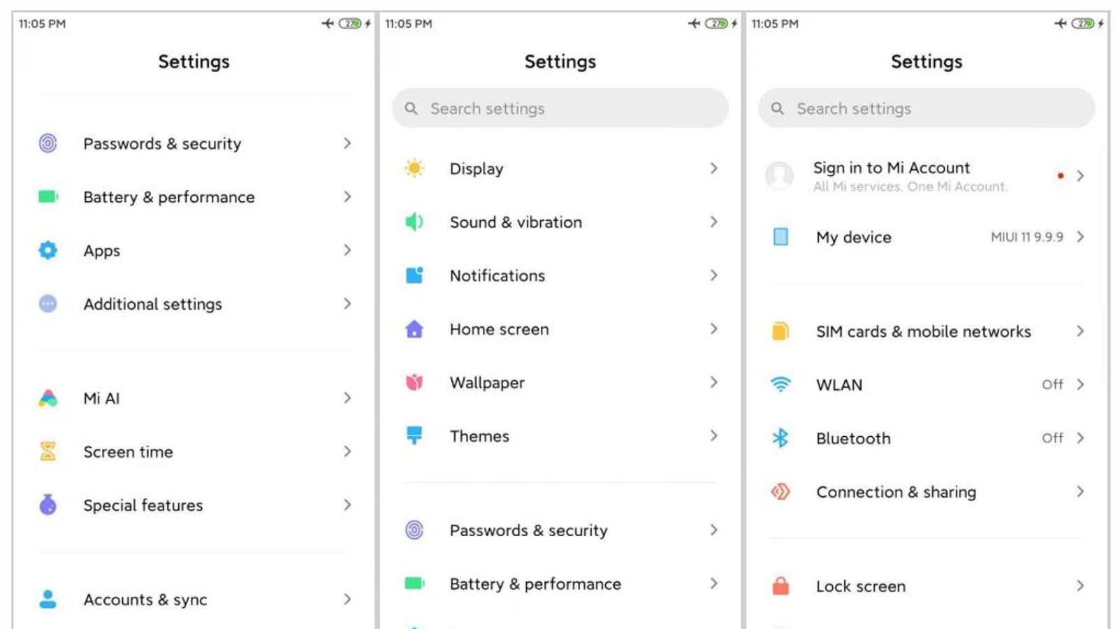 В MIUI 11 будет больше «воздуха» — свободного места между элементами, надписи станут больше.