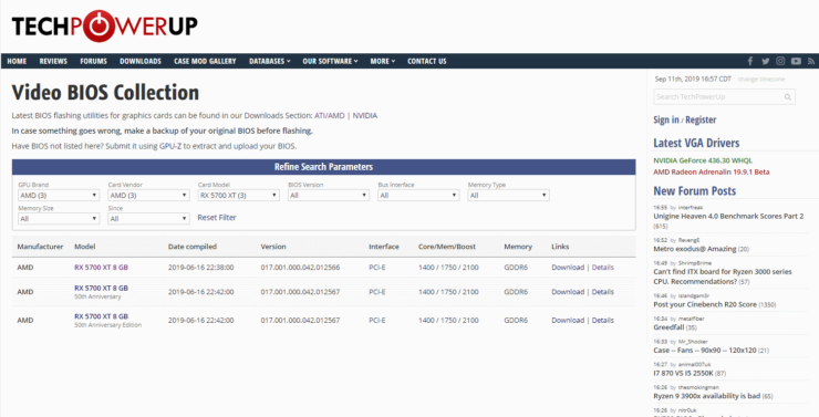 Источнику удалось провести манипуляции с BIOS после выпуска обновленной утилиты ATIFlash, в которой появилась поддержка моделей линейки Radeon RX 5700. Собственно, достаточно иметь эту утилиту, BIOS от Radeon RX 5700 XT и Radeon RX 5700, чтобы все должным образом заработало. Причем источник использовал референсную версию Radeon RX 5700.