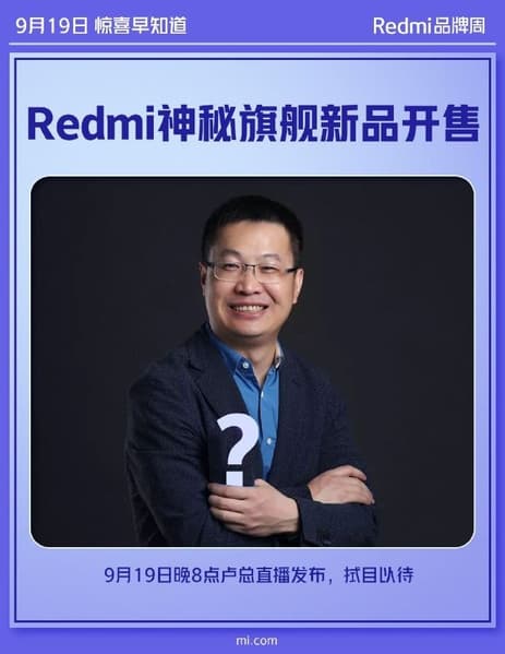 Сначала Redmi сообщила о запуске флагманского продукта в период между 17 и 23 сентября. Затем в в официальном магазине Xiaomi Mall появилось объявление, что глава Redmi и по совместительству вице-президент Xiaomi Лю Вейбинг (Lu Weibing) проведёт живую трансляцию 19 сентября.
