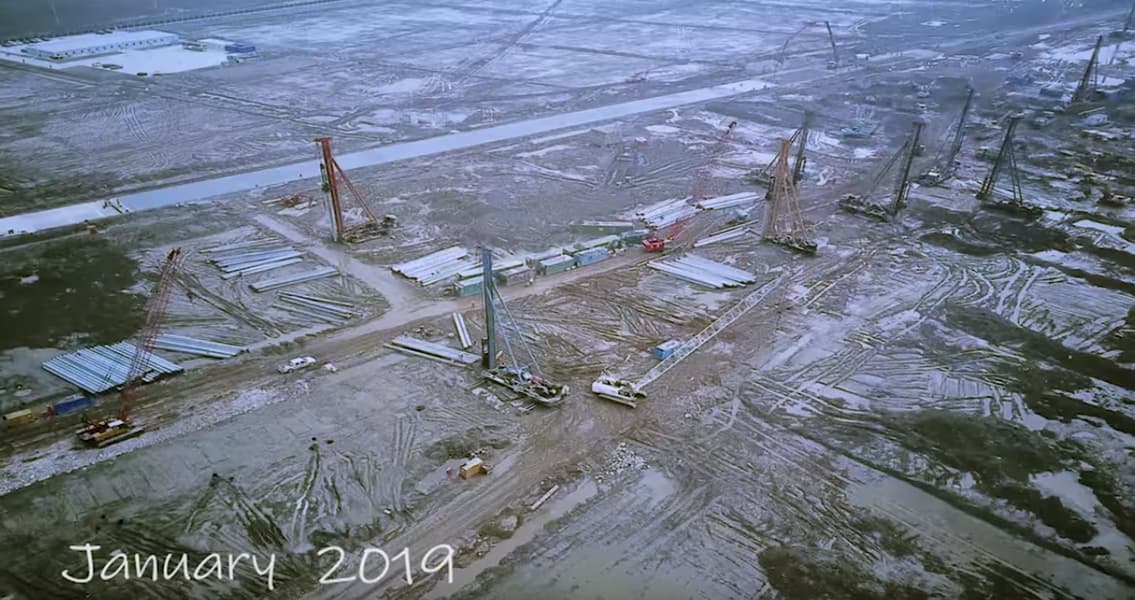 Поэтому строилась Gigafactory 3 невероятными темпами. На видео ниже можно видеть, как с января текущего года, когда и началось строительство, на условно пустом месте возник огромный завод.
