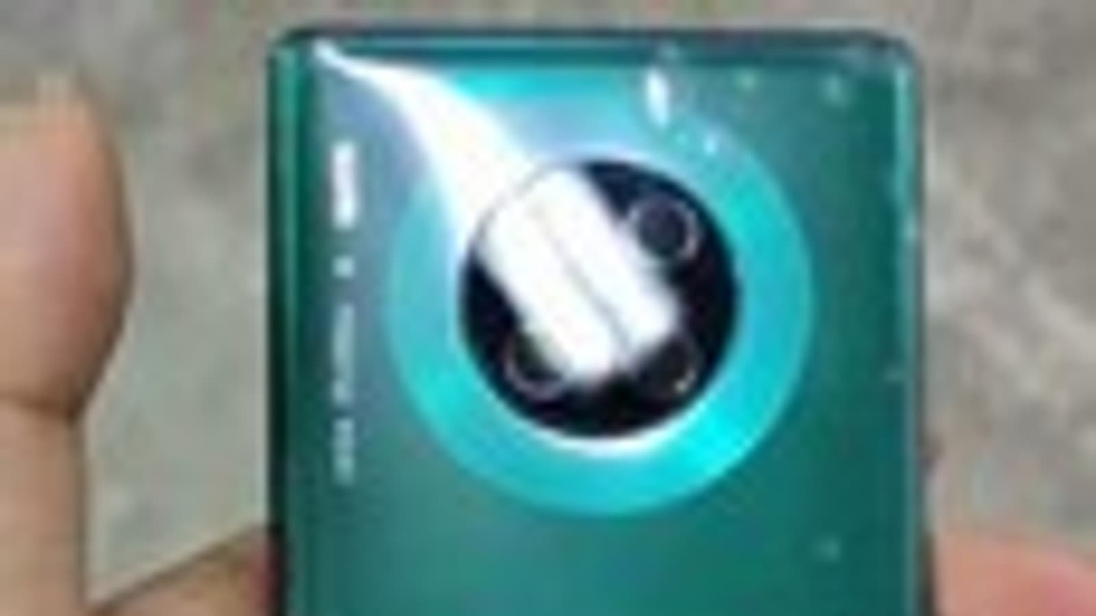 Huawei Mate 30 Pro на этом снимке запечатлен в новом зеленом цвете. Основная камера в круглом блоке оснащена четырьмя датчиками изображения, рядом с камерой в левом верхнем углу задней панели находится светодиодная вспышка нестандартной формы.