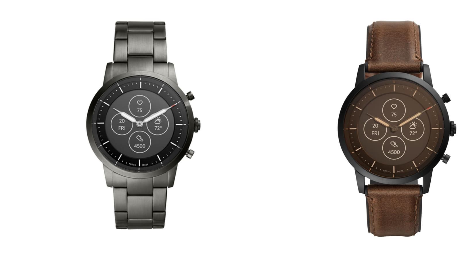 Теперь же в Сети появились умные часы Fossil Collider Hybrid Smartwatch HR, которые как раз оснащены аналоговыми стрелками и, предположительно, дисплеем E Ink. Информация о частоте сердечных сокращений, погоде, количестве шагов и дате позволила источнику предположить, что часы работают под управлением операционной системы Wear OS.