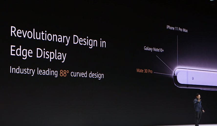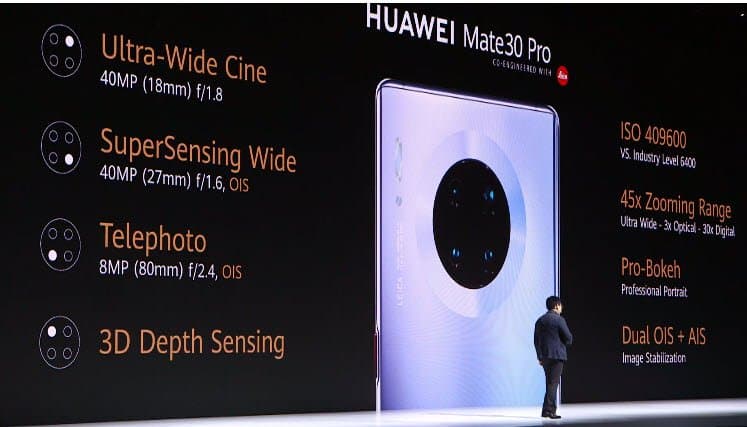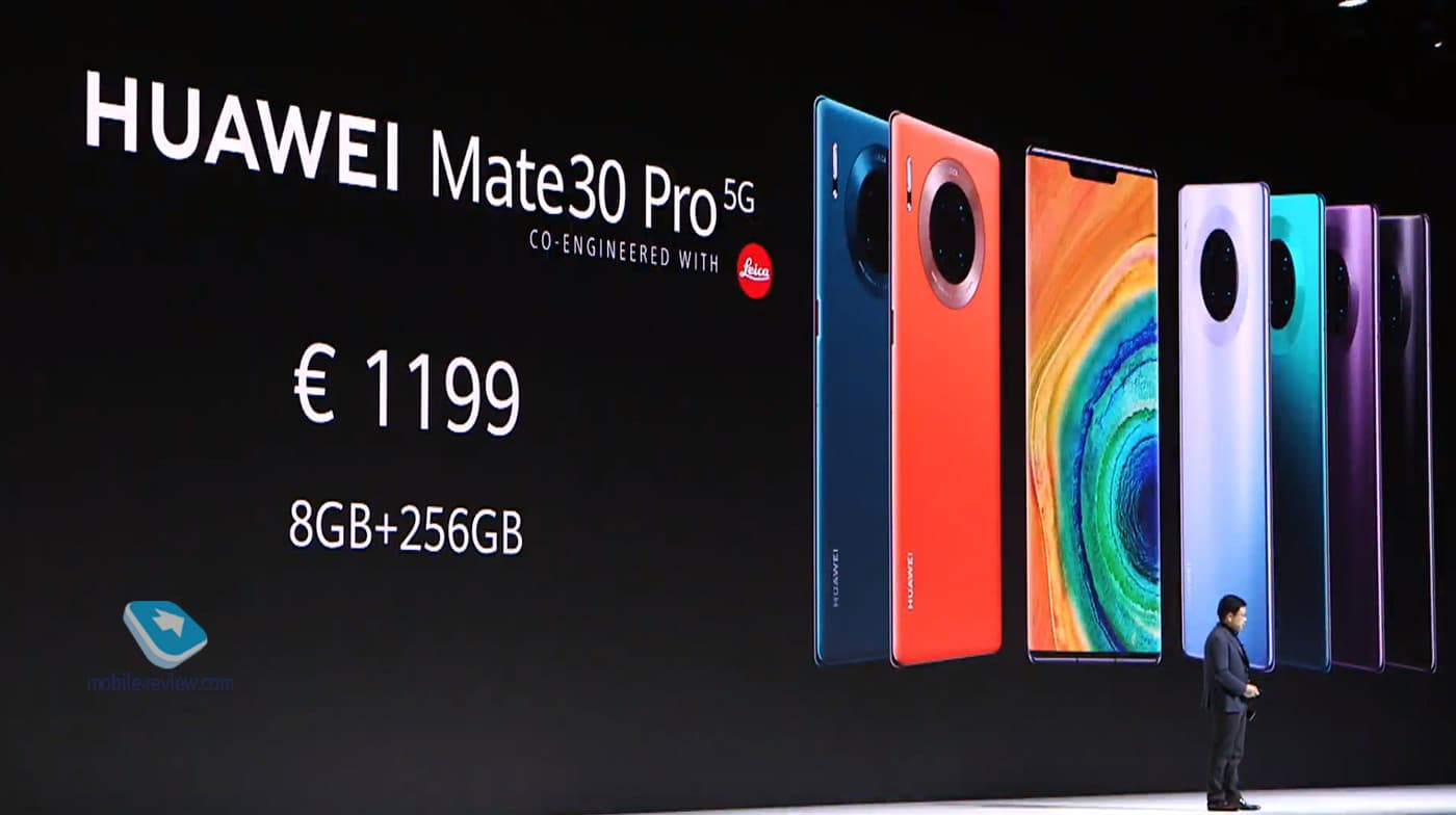 Практически вся информация о новинках утекла еще до анонса. Huawei Mate 30 Pro получит экран-водопад типа OLED диагональю 6,53 дюйма разрешением 2400 х 1176 пикселей, который загибается на угол 88°, а также однокристальную систему Kirin 990, 8 ГБ оперативной и 128/256 ГБ флэш-памяти. Он защищен от попадания пыли и влаги в соответствии с описанием степени IP68.