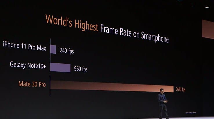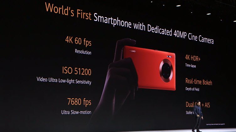 Смартфон поддерживает создание очень замедленных видео, разрешении видеороликов при частоте 7680 к/с составит 720р. Также есть возможность записывать видеоролики с частотой 960 к/с в разрешении 1080р. Есть возможность размытия фона в видеороликах и поддержка ISO до 51200. Huawei заявила, что смартфон иногда снимает лучше, чем оборудование, которое стоит десятки тысяч долларов.