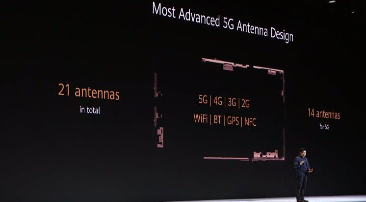 Смартфон получил 21 антенну, включая 14 5G-антенн.