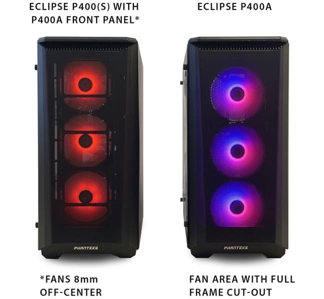 Из-за небольшой разницы в размерах между корпусами P400A, P400 и P400S, передние вентиляторы оказываются смещены на 8 мм относительно вертикальной оси корпуса, но производитель заверяет, что это не влияет на воздушный поток, хотя и может задеть чувства перфекционистов, если вентиляторы будут с подсветкой.