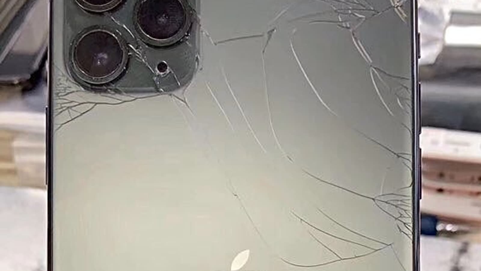 Судя по повреждениям, iPhone 11 Pro — достаточно крепкий орешек. Обычно стекло, укрывающее тыльную панель, распадается на массу нитей паутины, но в данном случае нижняя часть и вовсе целая, а с верхней… типичный владелец iPhone еще походит.