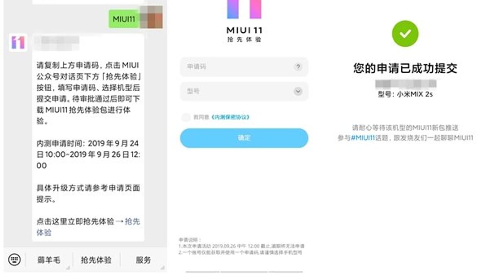 Оболочка распространяется посредством официального аккаунта MIUI 11 в WeChat. Пользователю нужно подать заявку, выбрать модель и, после одобрения, скачать новую версию интерфейса по ссылке и установить на смартфон.