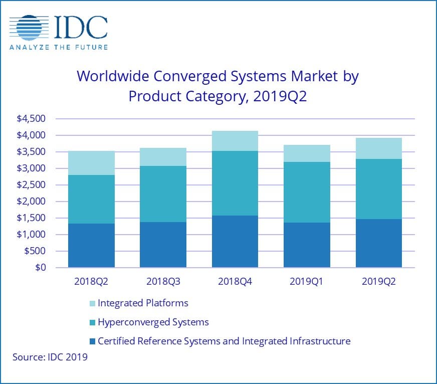 Специалисты аналитической компании IDC подготовили отчет за второй квартал 2019 года на рынке конвергентных систем. Согласно опубликованным данным, указанный рынок в денежном выражении достиг 3,9 млрд долларов. Это означает, что по сравнению с тем же периодом 2018 года он вырос на 10,9%.