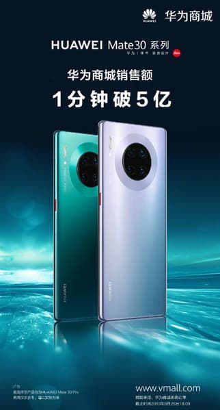 Реальные продажи стартуют через несколько часов, но всего за минуту всего на одной площадке Huawei Mall объем заказов превысил 500 миллионов юаней или 70 миллионов долларов США (китайский источник приравнивает это к продажам). Если принять среднюю стоимость смартфона в 5000 юаней (базовый Mate 20 стоит 4 тысячи юаней, а топовый Mate 30 Pro — 6,3 тысячи юаней), то всего за минуту было забронировано около 100 тысяч смартфонов. И ведь в расчет взята только одна площадка, на популярных JD.com и TMall объем заказов может оказаться еще больше.
