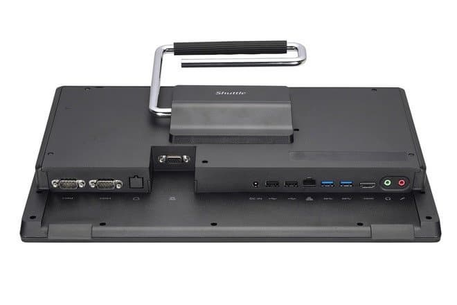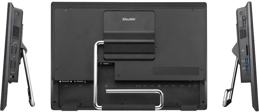Система собрана в одном корпусе с сенсорным дисплеем Full HD размером 15,6 дюйма. Его лицевая панель характеризуется степенью защиты IP54. В корпусе есть место для одного накопителя типоразмера 2,5. Кроме того, на системной плате есть слот M.2 для SSD с поддержкой NVMe. Максимальный объем оперативной памяти DDR4 — 32 ГБ. Она устанавливается в два слота SO-DIMM. Оснащение компьютера включает средства беспроводного подключения Wi-Fi и Bluetooth, порт Gigabit Ethernet, семь портов USB, слот для карт памяти, два порта COM, web-камеру, микрофон и громкоговоритель. Предусмотрено и подключение двух дополнительных мониторов, для чего предназначены выходы HDMI и VGA.