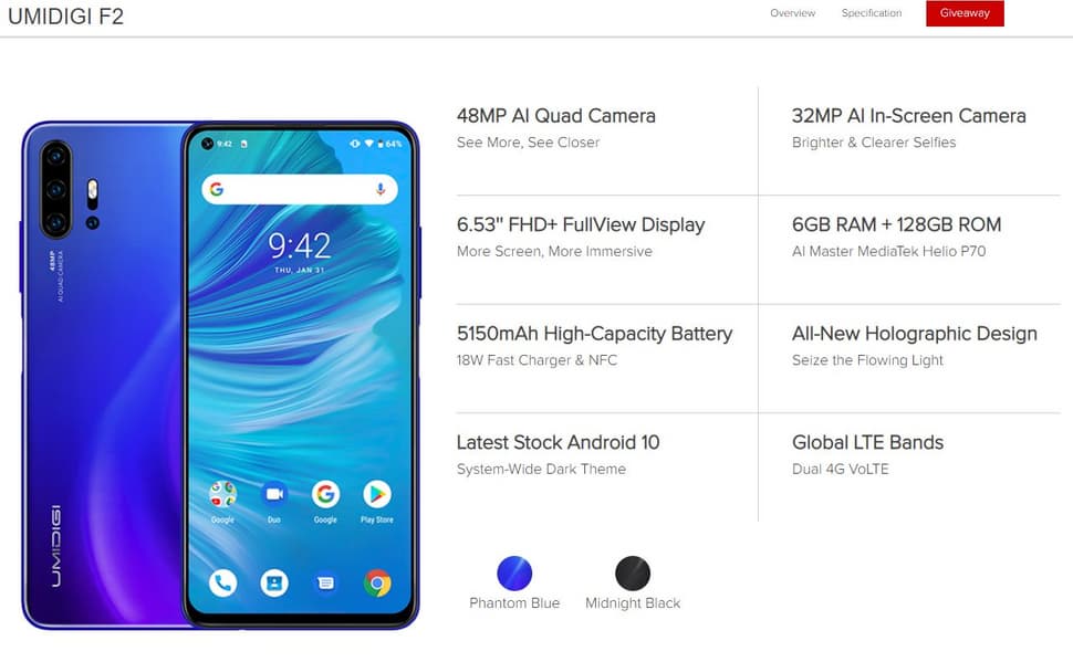 Старт продаж Umidigi F2 намечен на 14 октября, стоимость смартфона составит $300.