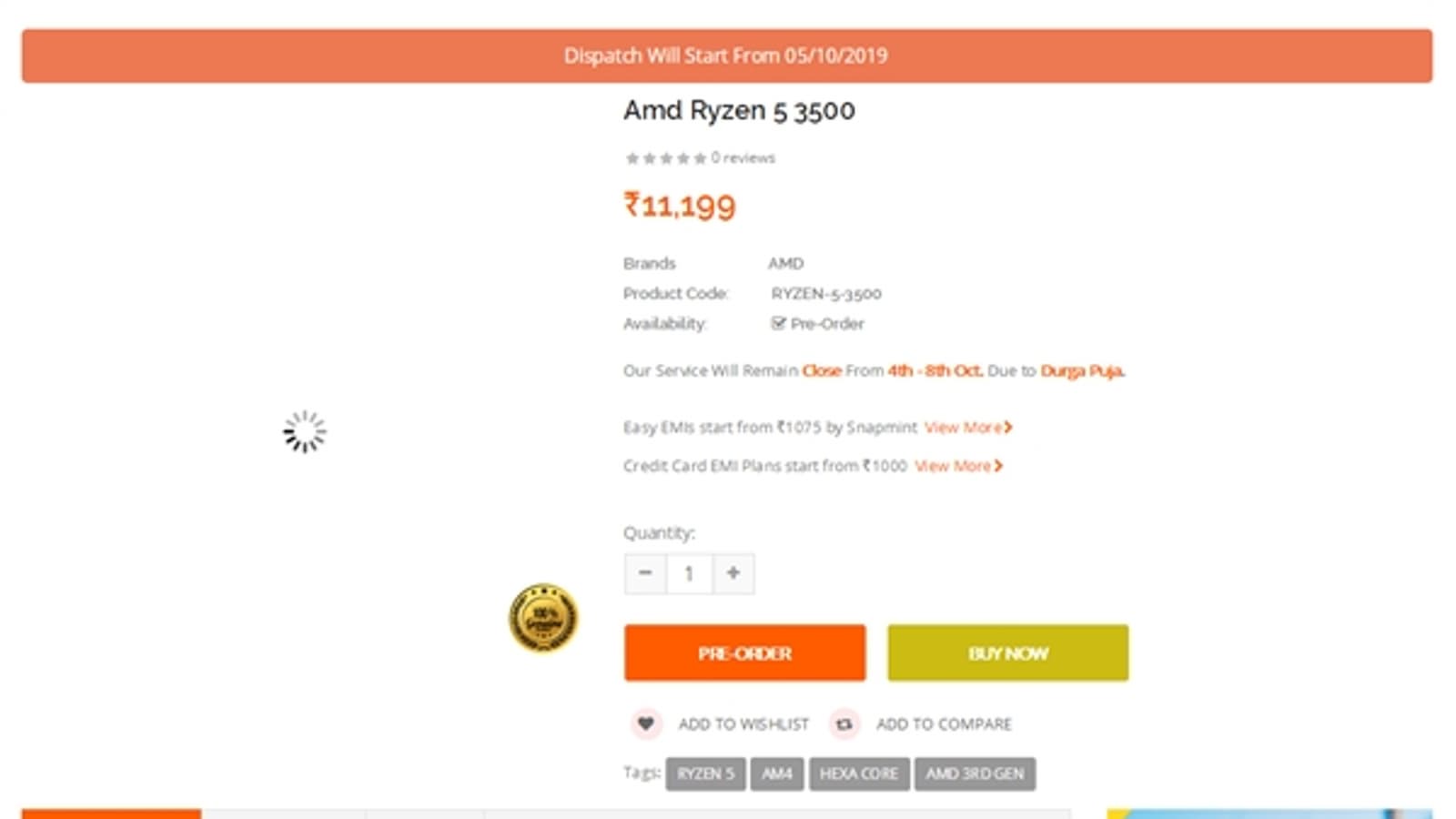 На прошлой неделе в Китае стартовали продажи нового процессора AMD Ryzen 5 3500X, а сейчас появились подробности относительно его немного упрощенной версии — Ryzen 5 3500. Согласно данным индийского интернет-магазина, эта модель поступит в продажу с 5 октября.