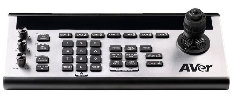 Контроллер CL01 совместим с профессиональными PTZ-камерами производства AVer и других компаний. Он позволяет управлять семью камерами, поддерживая протоколы VISCA, SONY VISCA, Pelco-D / P, UDP, IP (VISCA over IP). Возможно управление скоростью панорамирования, поворота и увеличения с помощью джойстика. Три ручки без ограничения угла поворота служат для изменения яркости и фокусировки. Контроллер наделен портами RS-485, RS-422, RS-232 и Ethernet. Есть и порт USB, но он используется только для обновления прошивки. Оснащение также включает экран OLED. При габаритах 173 x 99 x 350 мм устройство весит 2,5 кг.