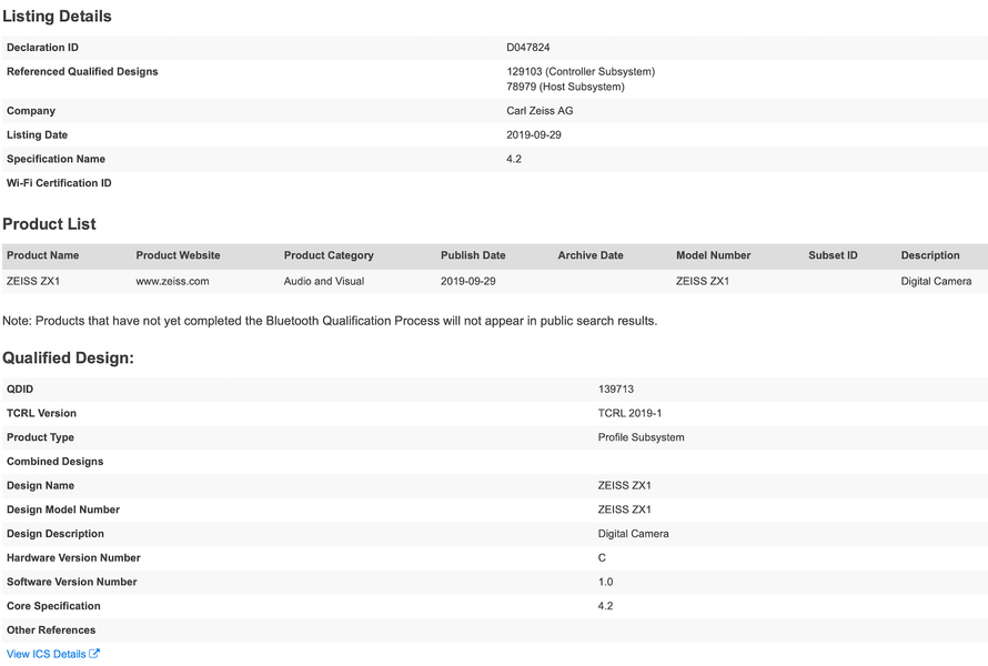 Похоже, что камера все же приближается к покупателям. На это указывает ее появление в базе данных организации Bluetooth SIG, сертифицирующей оборудование с поддержкой соответствующего беспроводного интерфейса.