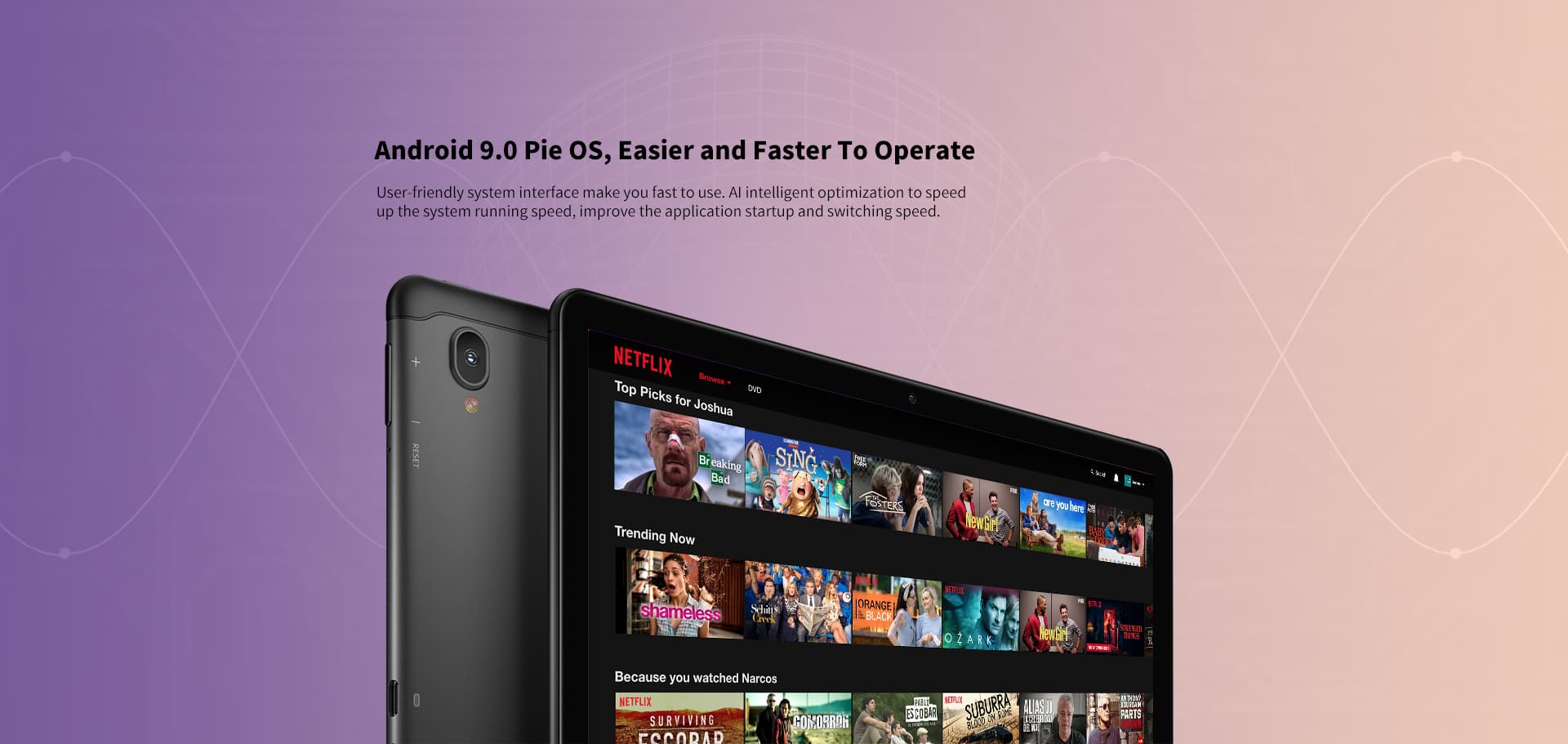 Из коробки планшет работать под управлением Android 9 Pie, при этом он оснащен очень громкой звуковой системой.