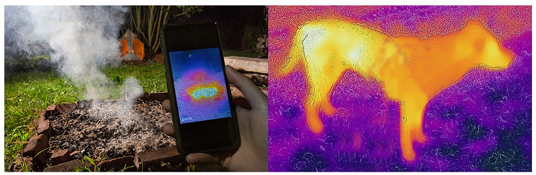 Что касается камер, обе версии оснащены 16-мегапиксельной фронтальной камерой, а вот основные отличаются. Они в обоих случаях тройные. В младшей версии имеется главный 48-мегапиксельный датчик, 16-мегапикселный датчик сверхширокоугольной камеры и пятимегапиксельный датчик глубины. У старшей главный датчик тот же, но он соседствует с тепловизионной камерой FLIR Lepton и пятимегапиксельным помощником данной камеры.