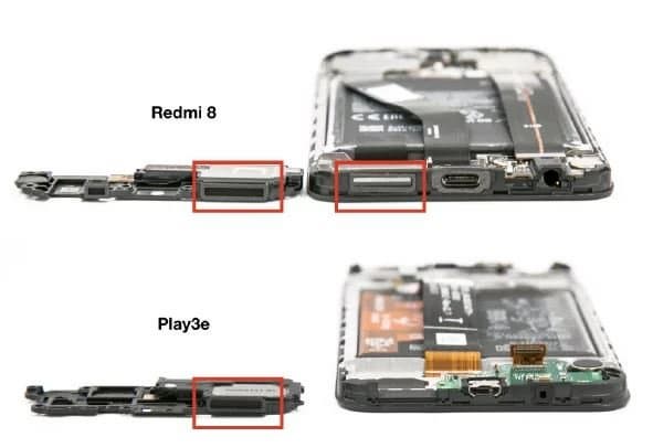 Дальше сравниваются громкоговорители, точнее — их защита. В Redmi 8 применен двухслойный фильтр, более эффективно защищающий от проникновения внутрь пыли и грязи, в отличие от одинарного в Honor Play 3e.