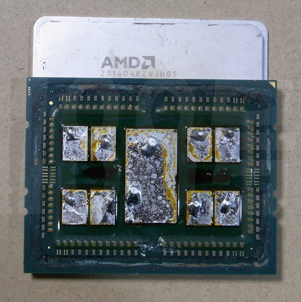 Как оказалось, AMD не отказалась от припоя не только в потребительских CPU, но и в серверных. Фотография 64-ядерного процессора Epyc нового поколения тому подтверждение.