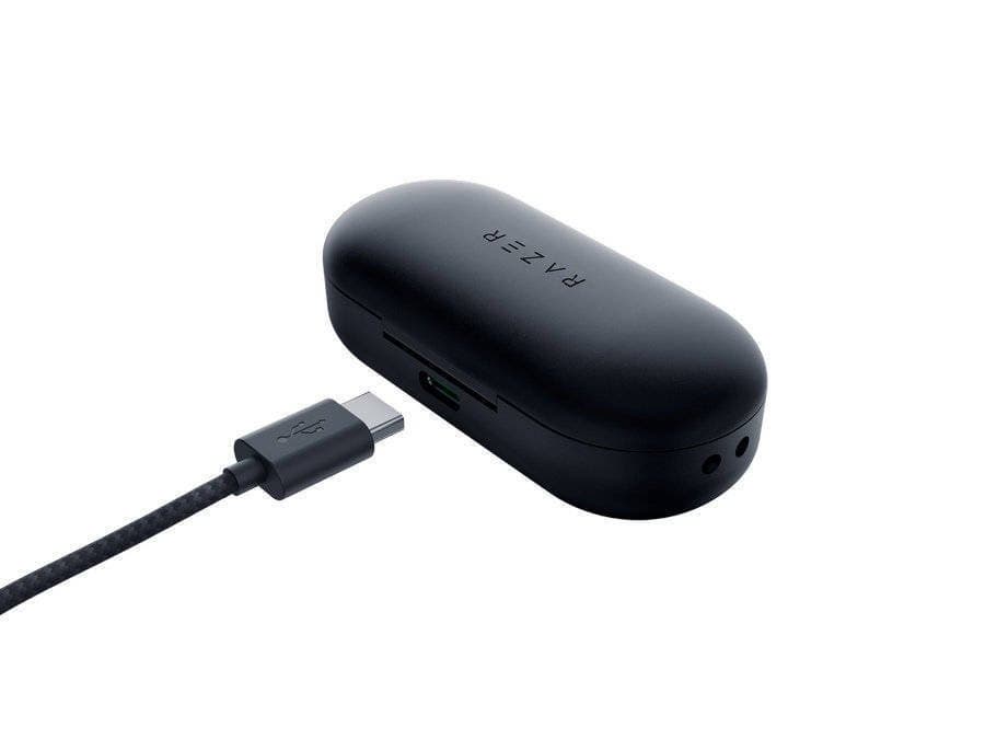 Впрочем, если взглянуть на кейс для зарядки, то видно, что дизайнеры Razer все же постарались соригинальничать, так как заряжаются наушники не стоя, а лежа. В соответствующих местах у них расположены зарядные контакты.