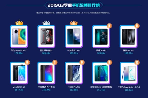 Разработчики бенчмарка Master Lu опубликовали очередной рейтинг (за третий квартал текущего года), в котором оценили плавность работы различных мобильных оболочек. Первое место в нем, отмеченное золотой короной, досталось Huawei Mate 30 Pro и, соответственно, EMUI 10.