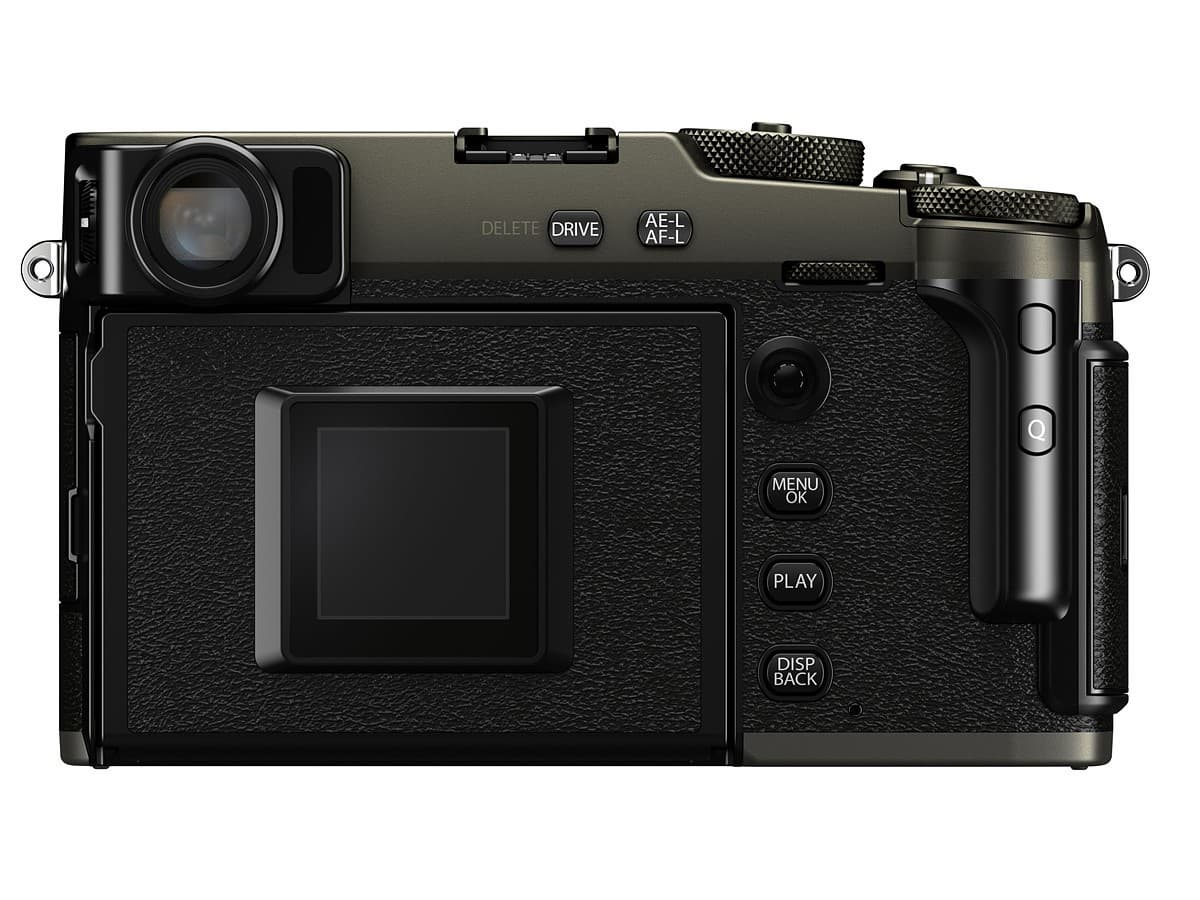 Камера оснащена «улучшенным гибридным видоискателем», в котором оптический канал совмещен с дисплеем OLED с возможностью переключения между ними. Видоискатель охватывает 95% кадра, разрешение дисплея — 3,69 млн точек. Кроме того, есть жидкокристаллический дисплей, но в закрытом положении он невиден — примерно, как у ноутбука. Для использования его нужно открыть, отклонив вниз на угол до 180°. В закрытом положении вместо трехдюймового сенсорного дисплея виден небольшой вспомогательный дисплей размером 1,28 дюйма, куда по умолчанию выводятся сведения о том, какая пленка сейчас эмулируется, а также значения ISO и баланса белого.