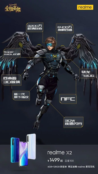 Смартфон Realme X2 получил экран диагональю 6,4-дюйма, однокристальную систему Qualcomm Snapdragon 730G, 64-мегапиксельную основную камеру, которую дополняют датчики разрешением 8, 2 и 2 Мп, а также фронтальную камеру на 32 Мп.