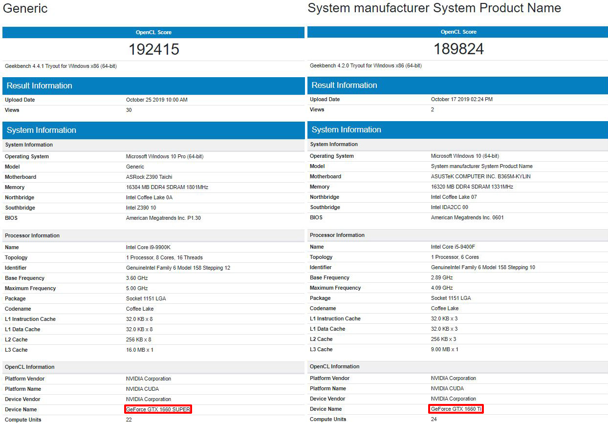 Точные данные о производительности видеокарты GeForce GTX 1660 Super появятся после ее премьеры, ну а сейчас их приходится собирать по крупицам. Ожидалось, что GeForce GTX 1660 Super будет немного уступать GeForce GTX 1660 Ti, однако в тесте OpenCL новинка даже превосходит GeForce GTX 1660 Ti.