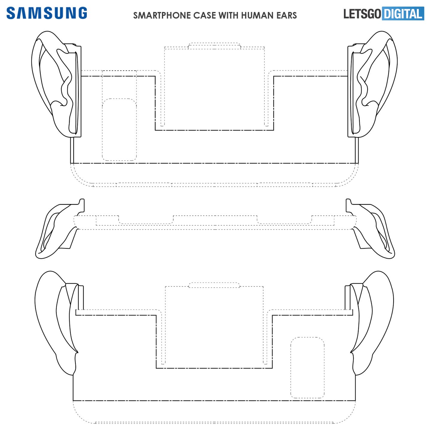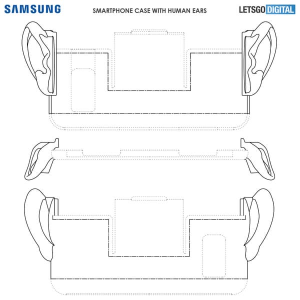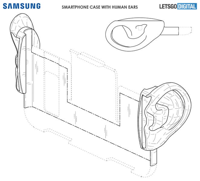 Патент описывает смартфон с «человеческими ушами». Это не опечатка, речь, действительно, о «человеческих ушах». Смартфон получает по забавному уху с правой и левой стороны, если держать устройство горизонтально.