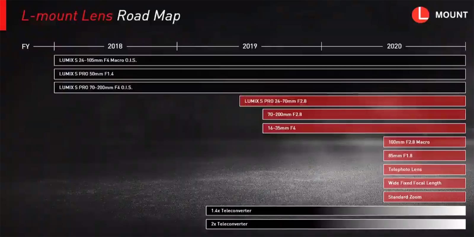Как видно на иллюстрациях, отражающих планы японского производителя, в этом году другие модели с креплением L можно не ждать. Зато на 2020 год запланирован выпуск пяти новинок, включая объектив для макросъемки с фокусным расстоянием 100 мм и максимальной диафрагмой f/2,8 и портретный объектив с фокусным расстоянием 85 мм и максимальной диафрагмой f/1,8. Кроме того, должен выйти телеобъектив, широкоугольный объектив с фиксированным фокусным расстоянием и стандартный трансфокатор.