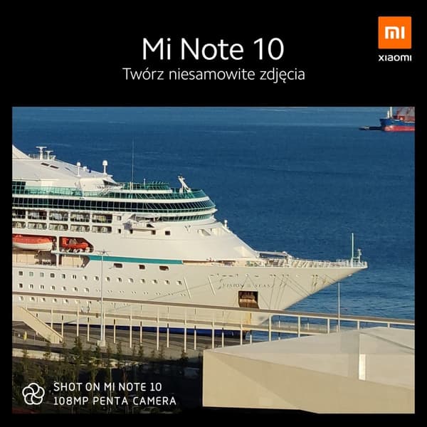 Также были опубликованы новые фотографии, сделанные в районе португальского города Лиссабон. Снимок круизного лайнера Vision of Seas был сделан с расстояния более 500 метров, однако впечатляющий зум Xiaomi Mi Note 10 позволяет рассмотреть надпись на борту и другие детали.