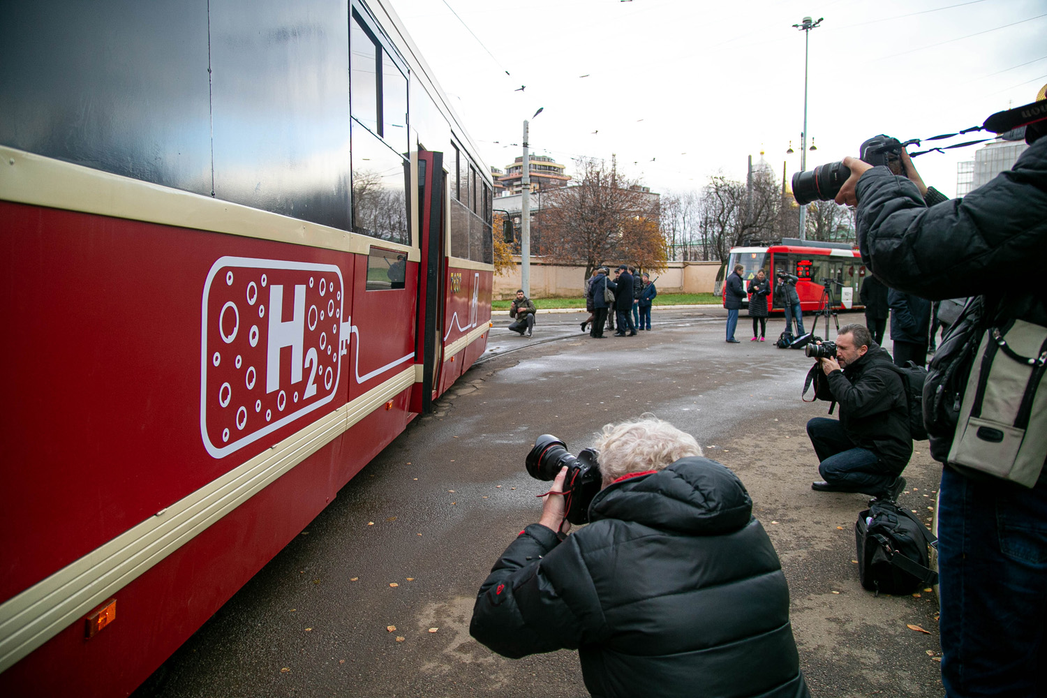 Испытательная платформа для водородных топливных элементов на базе хорошо себя зарекомендовавшего трамвая ЛМ-68М была создана в производственном депо Горэлектротранса. Как утверждается в сообщении, это первое в России транспортное средство на водороде.