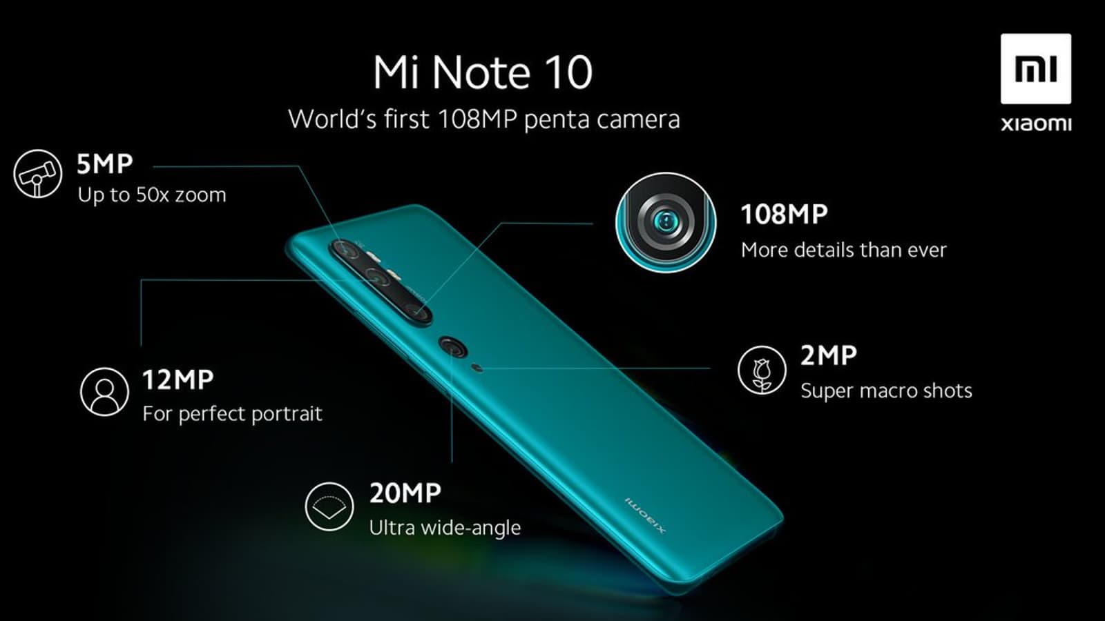 Данное изображение сопровождается перечислением абсолютно всех характеристик основной пятимодульной камеры Xiaomi Mi Note 10. Да, мы уже знали, что разрешение основной камеры составит 108 Мп (в ней используется датчик Samsung ISOCELL Bright S5KHMX), а в сверхширокоугольной камере будет установлен датчик изображения разрешением 20 Мп.