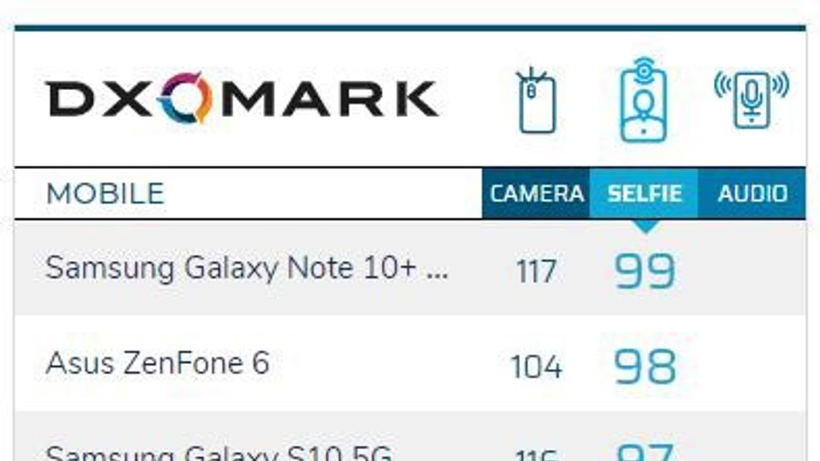 Впрочем, Honor 20 Pro остановился в шаге от десятки лучших. Он набрал 85 баллов, при том, что на десятой позиции «селфирейтинга» с 86 баллами расположился OnePlus 7 Pro. На 12 позиции находится Xiaomi Mi Mix 3 с 84 баллами.