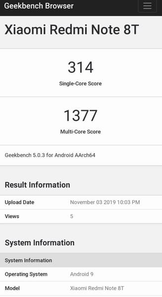 Проверенный сетевой информатор Мукул Шарма (Mukul Sharma), который регулярно публикует достоверные сведения о новинках мобильной индустрии, выложил результаты тестирования смартфона Redmi Note 8T в популярном бенчмарке Geekbench.
