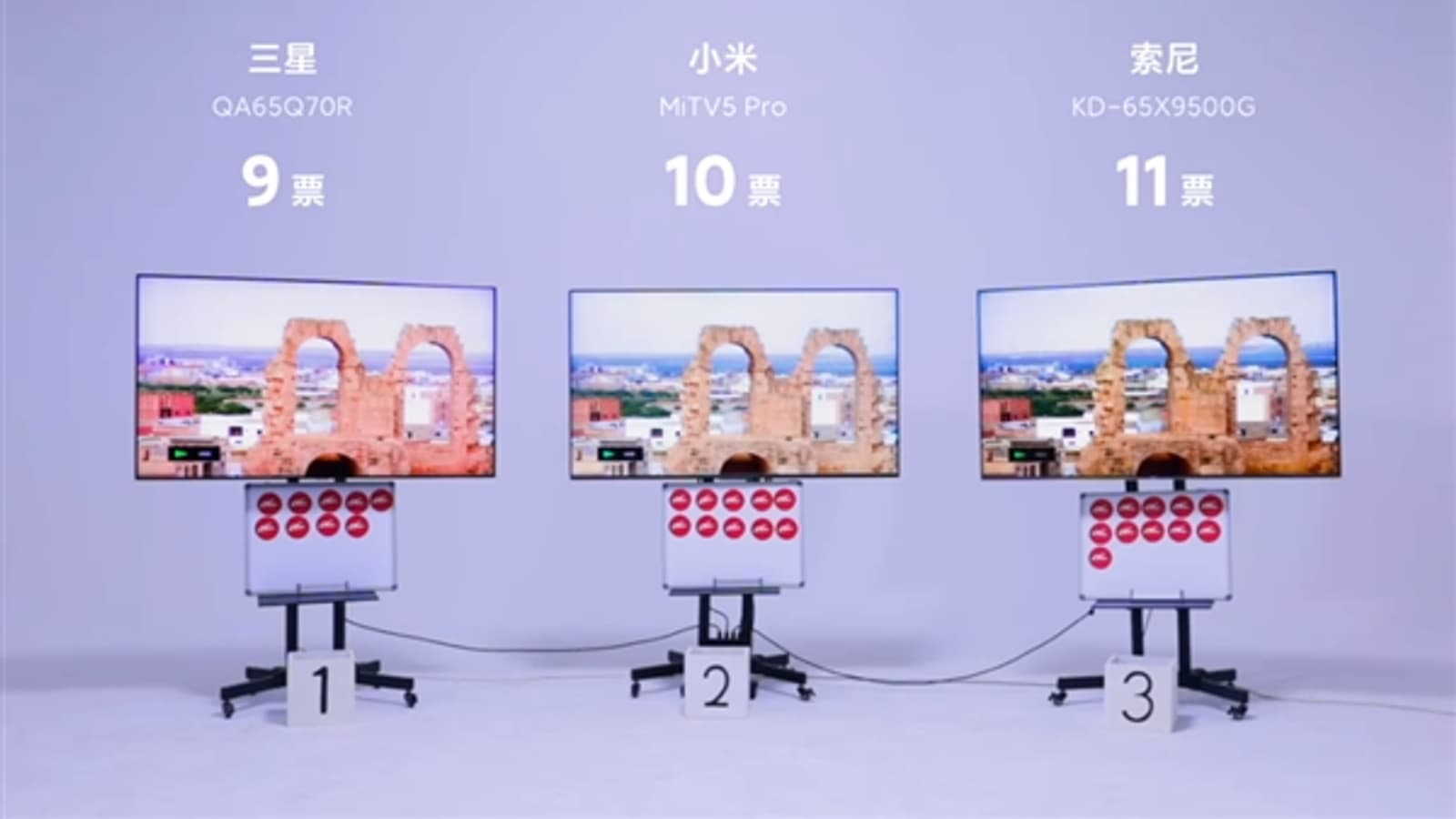 В тестировании приняло участие 30 человек. 9 отдали свои голоса модели Samsung, 11 выбрали Sony, а 10 отдали свои голоса в поддержку Xiaomi TV 5 Pro.