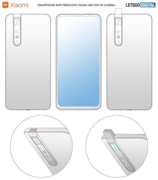 Всплывающая фронтальная камера будет находиться в той же стороне, где располагается блок основной камеры. На патентных картинках указано меньше датчиков изображения, чем у Xiaomi Mi CC9 Pro, но давно известно, что возможности камерофона определяются не только и не столько количеством модулей в камере. Тем более, что на патентных изображениях обычно показаны устройства не со 100-процентной точностью.