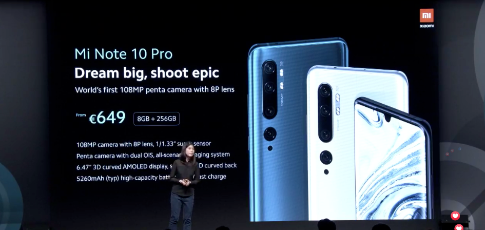 Также компания представила ещё более совершенную модель Mi Note 10 Pro.