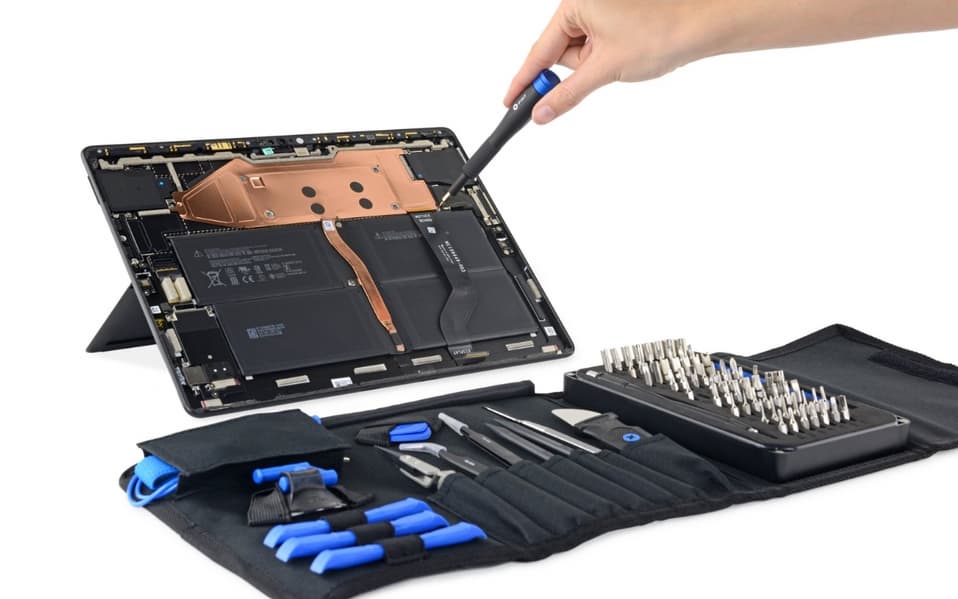Теперь вот iFixit разобрали планшет Surface Pro X, основанный на SoC Surface SQ1 (она же Snapdragon 8cx). Забегая вперёд, новинка получила шесть баллов, что делает её одним из самых ремонтопригодных топовых планшетов.
