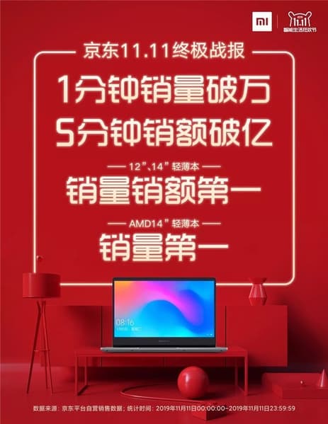 Подразделение Xiaomi, занимающееся выпуском ноутбуков, отчиталось о своих успехах в день распродаж – 11 ноября. Учитывая, что накануне были объявлены очень приличные скидки на многие модели, логично было ожидать высокий спрос. И он случился.
