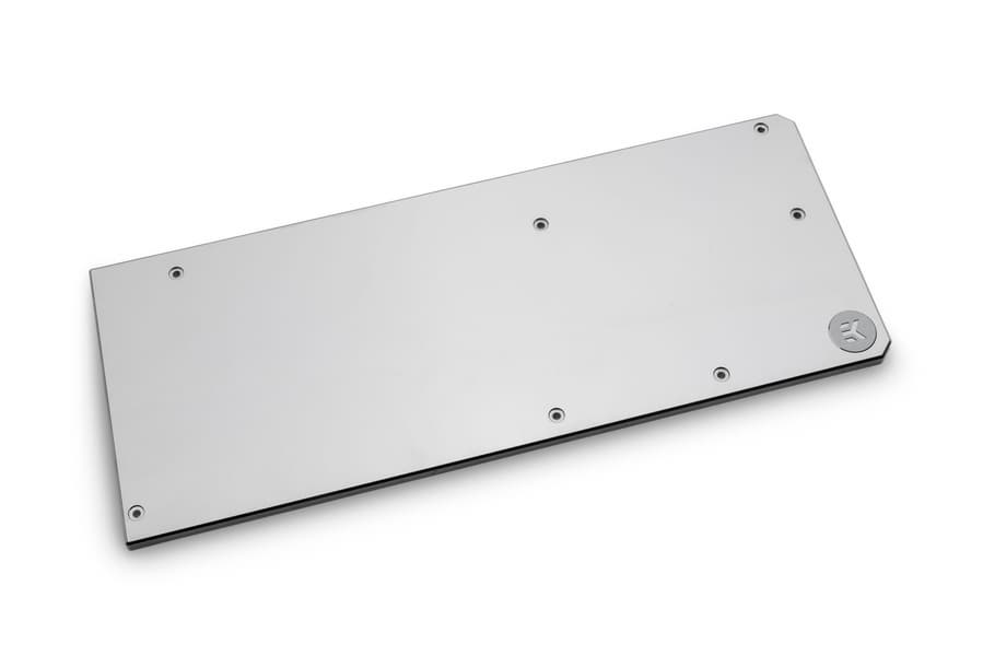 Водоблоки с полным покрытием отводят тепло от GPU, 8 ГБ памяти GDDR6 и мощных регуляторов напряжения в подсистеме питания. Поскольку водоблок заметно уменьшает толщину карты, в комплект включена одинарная монтажная планка. В комплект также входят крышка терминала и декоративный элемент, закрепляемый на торце водоблока, противоположном монтажной планке. Кстати, крышку и декоративный элемент можно приобрести отдельно. Кроме того, дополнительно предложена пластина, закрепляемая на тыльной стороне печатной платы.