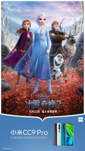 Компании Xiaomi и Disney сообщили о взаимовыгодном партнерстве и совместном продвижении своих продуктов, причем с одной стороны выступает лучший камерофон Xiaomi, который вышел под названием Xiaomi Mi CC9 Pro в Китае и как Xiaomi Mi Note 10 в остальных регионах мира, а с другой — речь идет о новом анимационном фильме «Холодное сердце 2» (Frozen 2).