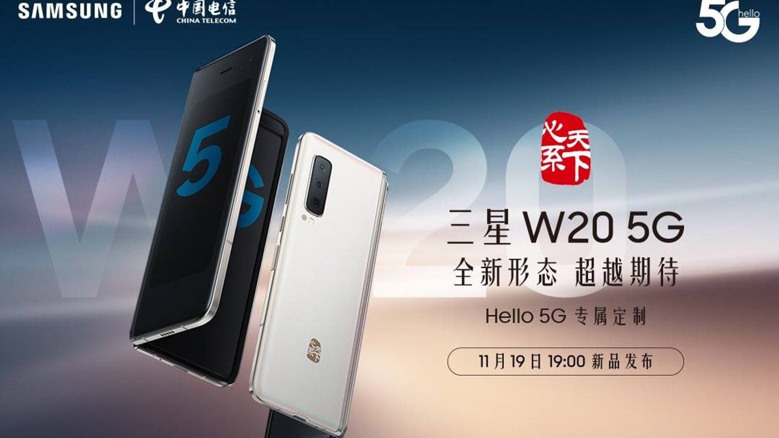На них изображен улучшенный вариант нынешнего складного смартфона с гибким экраном Samsung Galaxy Fold. Новинка, названная W20 5G, мало чем отличается от Galaxy Fold внешне, зато построена на более свежей однокристальной платформе Qualcomm Snapdragon 855 Plus и поддерживает 5G.