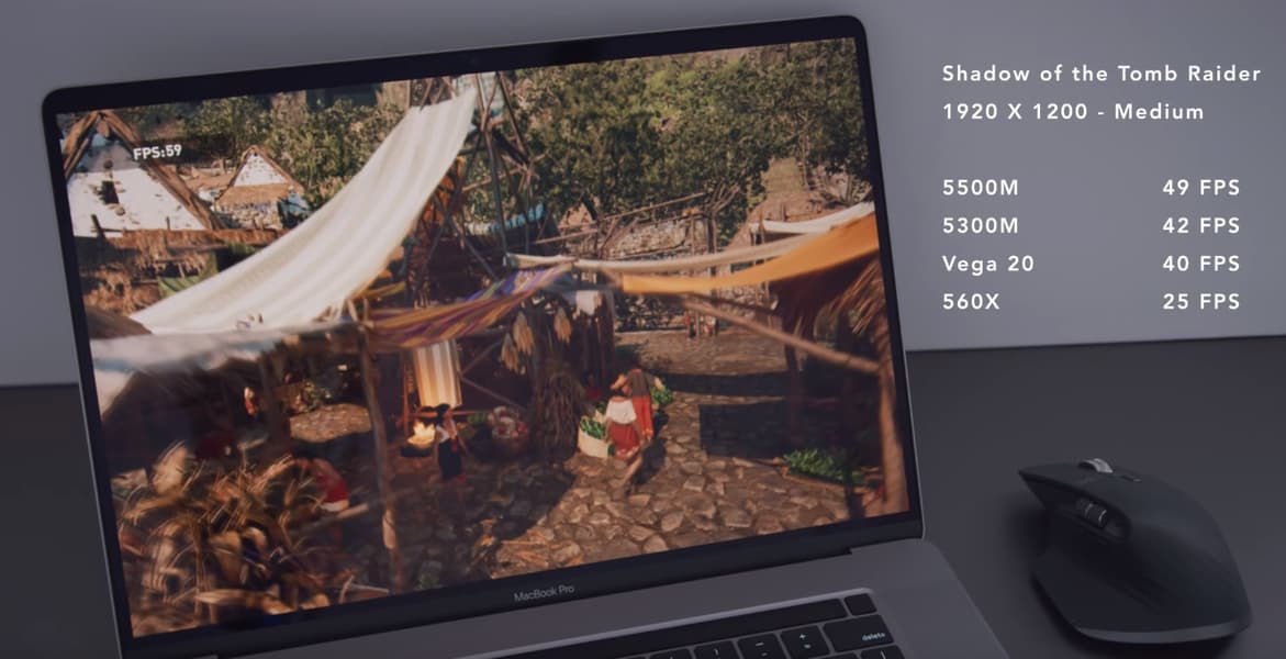 То есть Radeon Pro 5300M в играх лишь немногим быстрее Radeon Vega Pro 20, а вот Radeon Pro 5500M обеспечивает уже почти 20-процентный прирост производительности.
