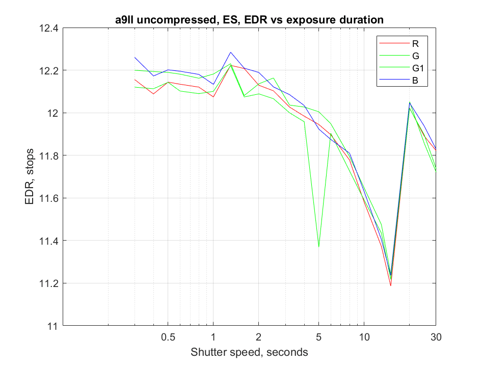 Джим Кассон (Jim Kasson), ранее определивший, что в a7R IV алгоритм включается при выдержках 3,2 с и более, а в Sony a7R III — когда выдержках 4 с и более, протестировал камеру Sony a9 II.