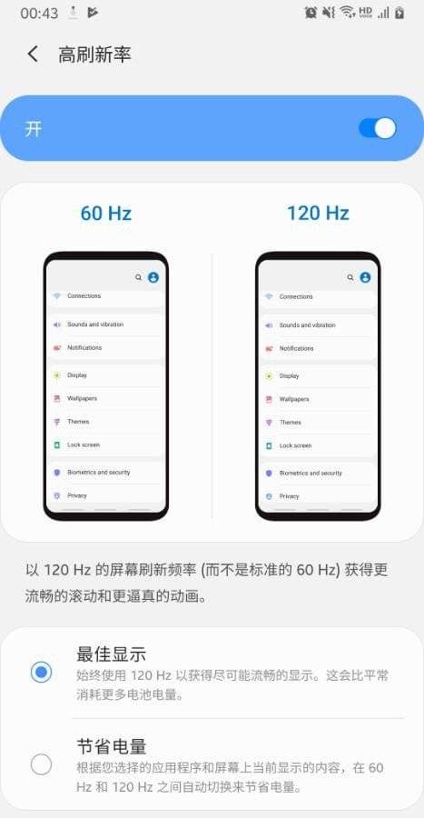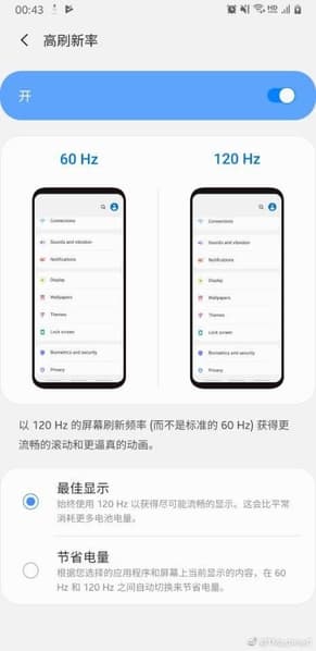 Как мы уже сообщали, пользователи Samsung Galaxy Note9 обнаружили в настройках бета-версии оболочки One UI 2 переключатель между режимами с кадровой частотой 60 и 120 Гц.
