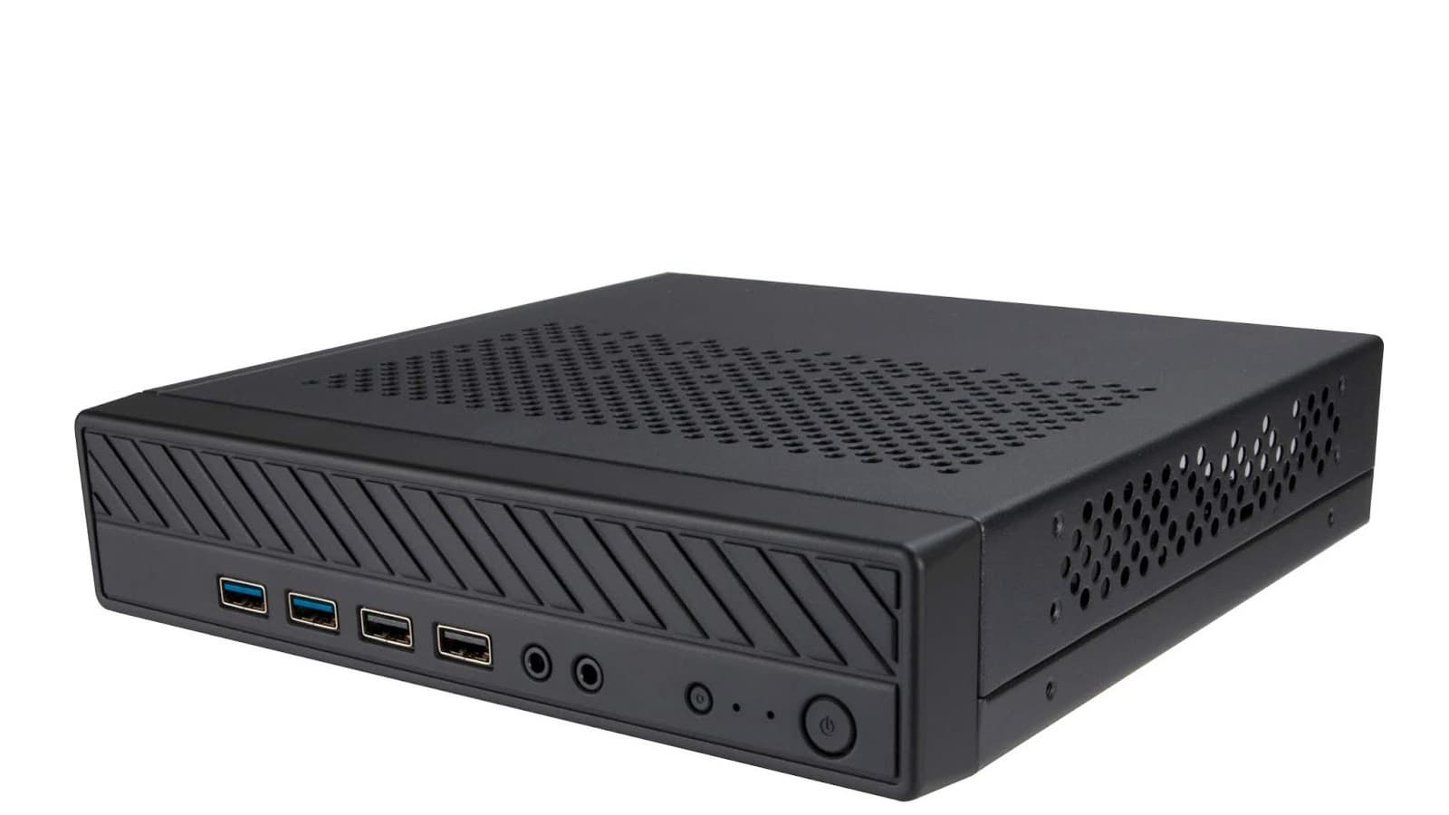Верхняя и боковые поверхности корпуса размерами 208 x 203 x 45 мм щедро перфорированы для лучшего отвода тепла. Опционально возможна установка 40-миллиметрового вентилятора. На передней панели есть кнопки питания и перезагрузки, индикаторы питания и активности накопителя, разъемы для наушников и микрофона, а также четыре разъема USB Type A, два из которых соответствуют спецификации USB 3.1, а два — спецификации USB 2.0.